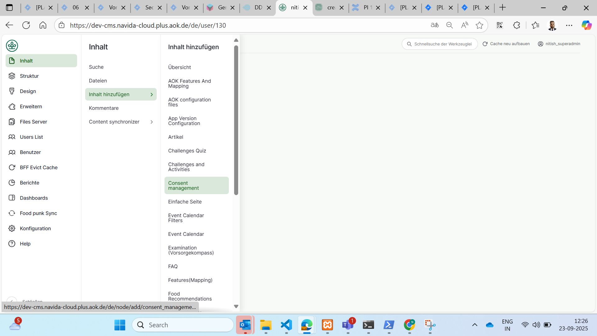 1. Click on Inhalt (Content) at top bar