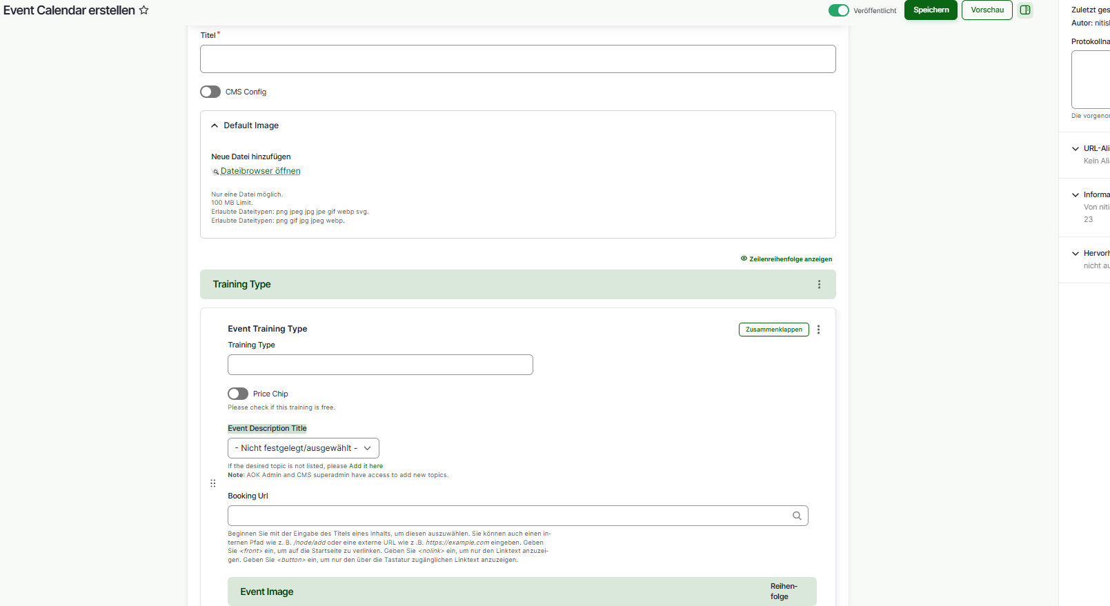 - Click on 'Event Image hinzufugen' to add Event Image.