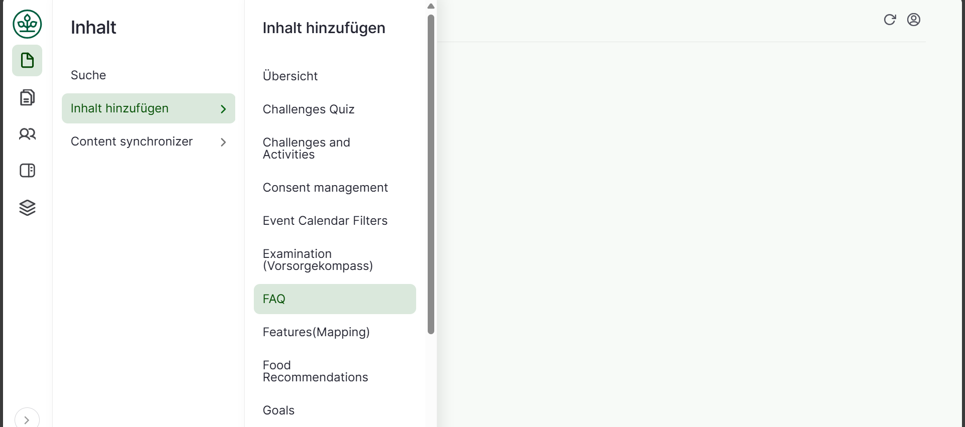 1. Click on Inhalt(Content) -> Inhalt hinzufügen (Add Content) -> FAQ